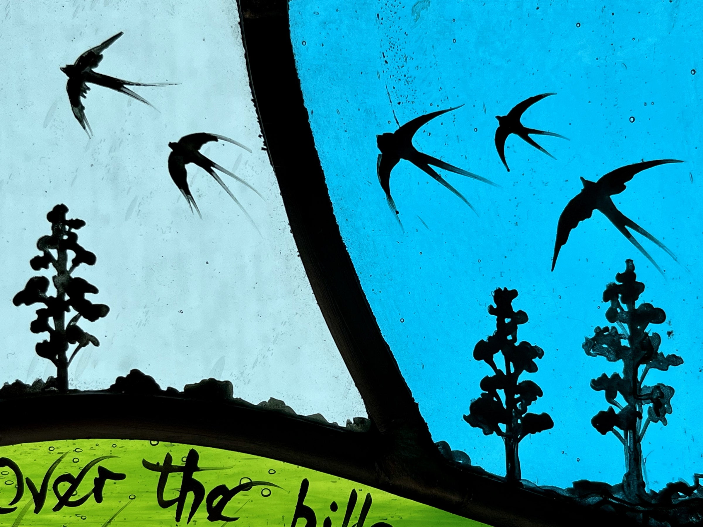 Hand painted kiln fired stained glass by Caroline Loveys.