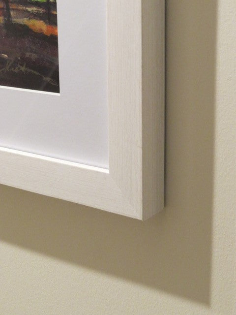Supplied mounted and framed in a soft off-white limed frame as shown.